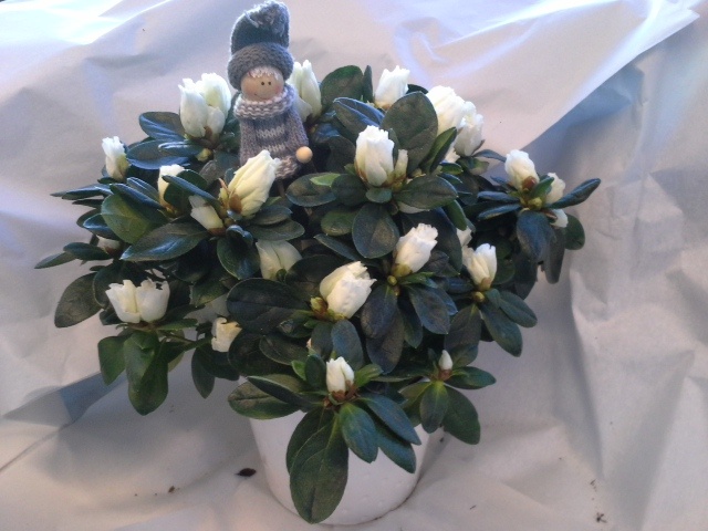 Flott Asalea med potte og pynt. En hyggelig hilsen til en du setter pris på :