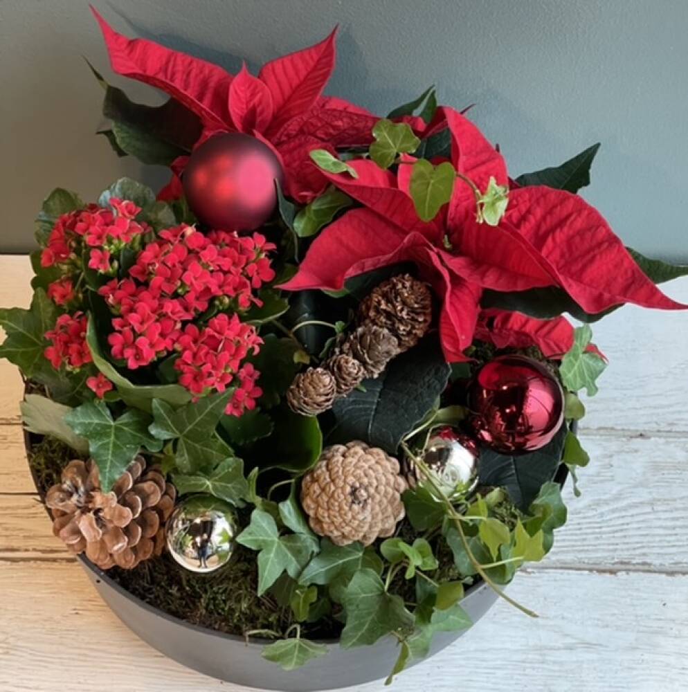 Stor sammenplanting med julens røde blomster (ikke allergivennlig)